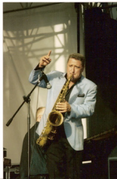 Pete Cook saxman and author of Road Rat Tips in dark